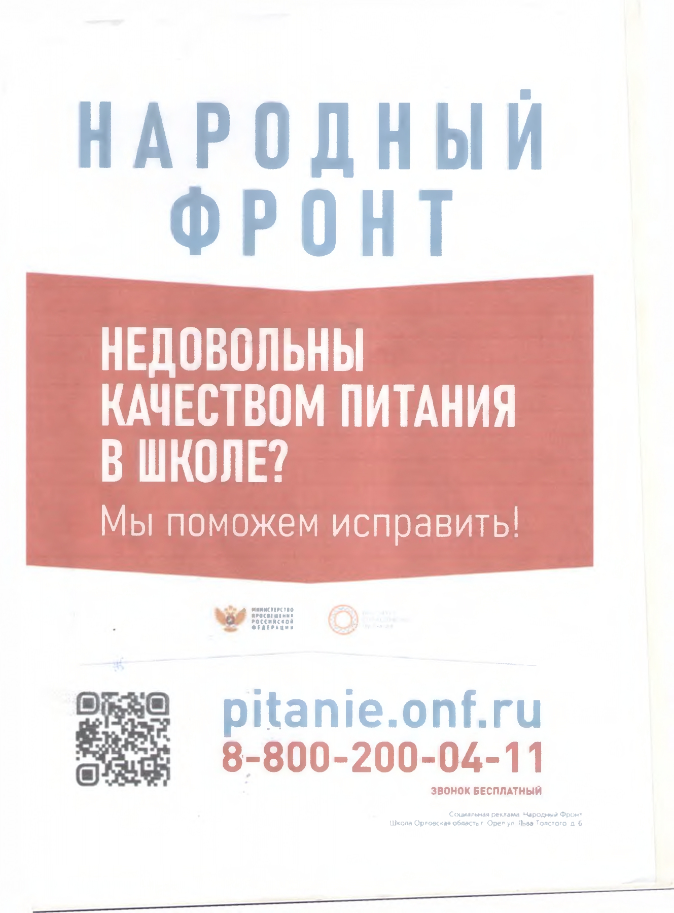 Недовольны качеством питания в школе? ЗВОНИТЕ, мы поможем исправить! (Народный фронт)